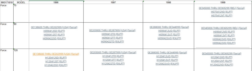 | Force (efter marked) | F-75, F-80, F-90, F-100, F-115 (2-wire) |
