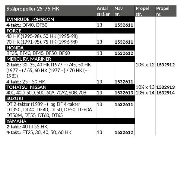 Stålpropeller for 25-75 HK med 3½" gearhus