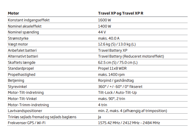 Kraftfuld ydeevne: Travel XP leverer 44 % mere skubkraft end standardmodellen Travel, hvilket gør den ideel til større både og krævende forhold.